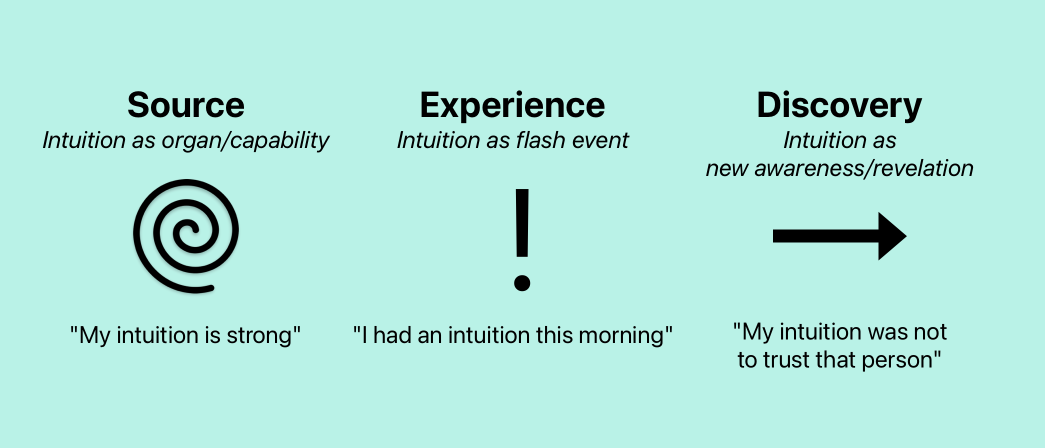 Intuition as a noun is also often used interchangeably in three different contexts: